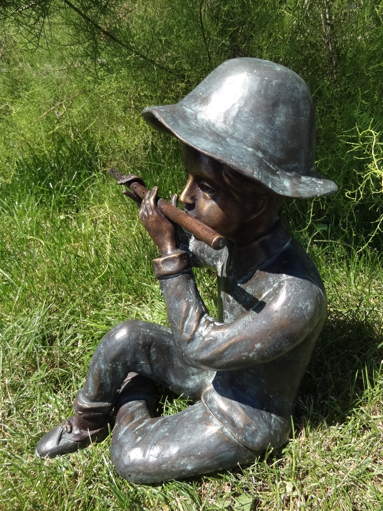Bronzefigur Bronzeskulptur Flötenspieler