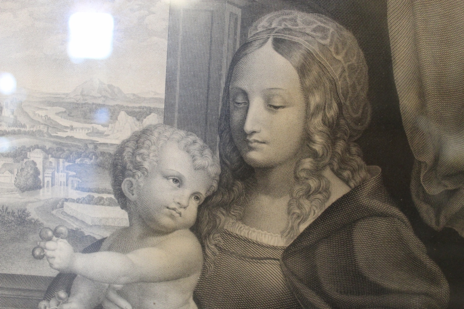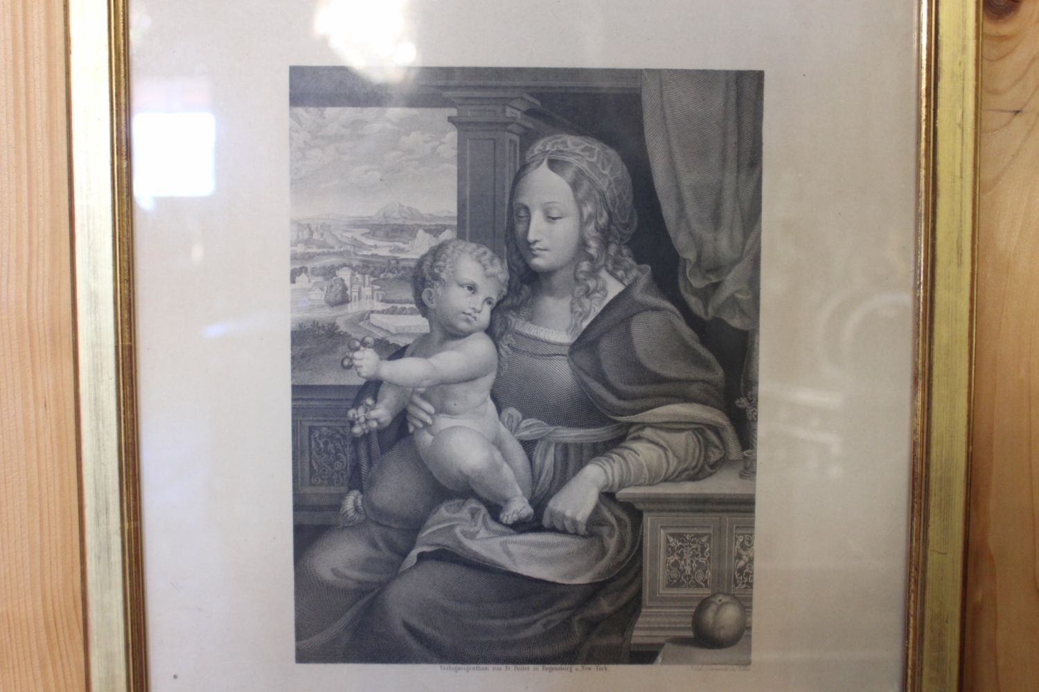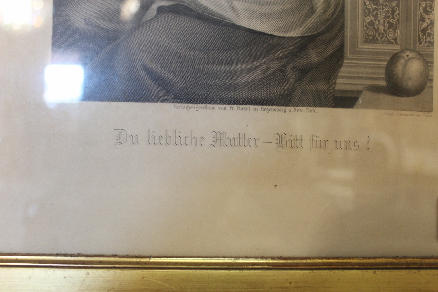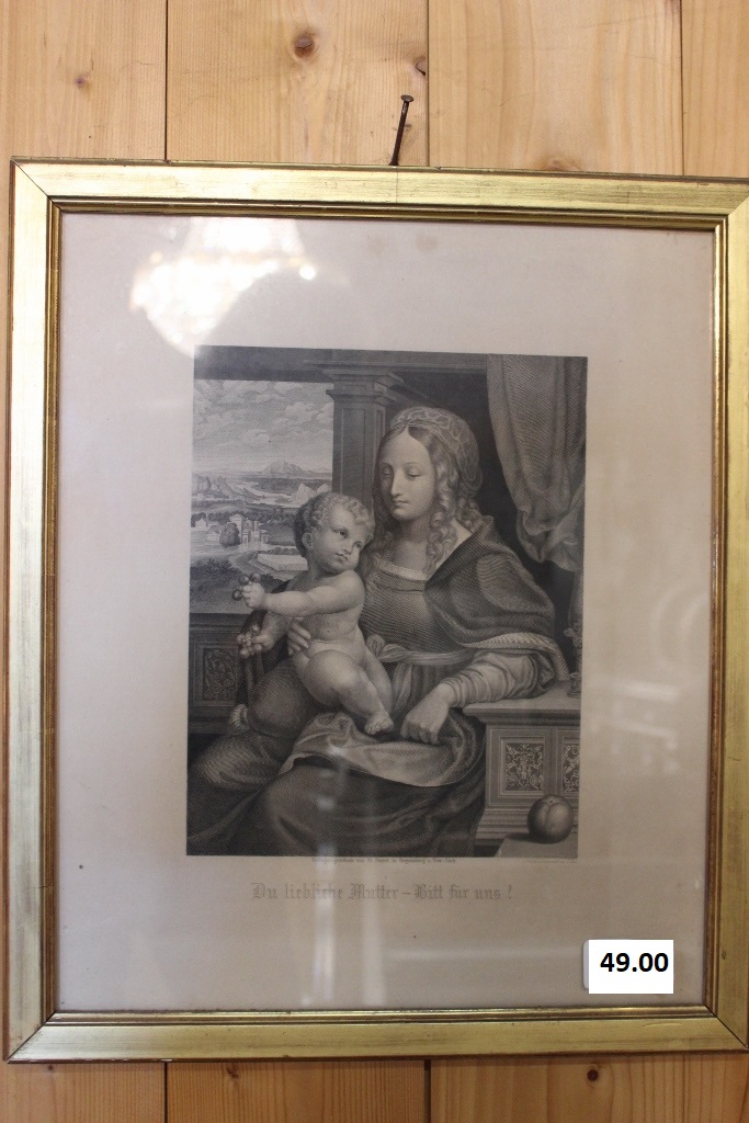 Antiker Stich schwarz-weiss in Goldrahmen"Mutter Gottes" (nach Leonardo da Vinci)verkauft