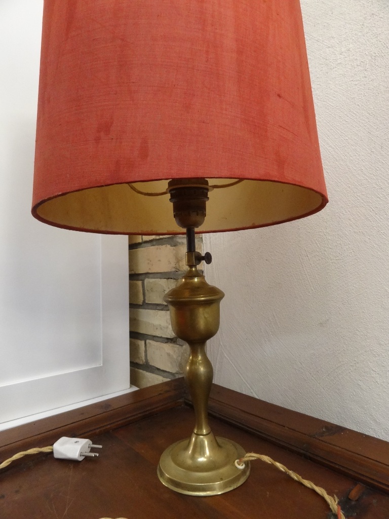 Antike Ständerlampe,mit Messingfuss.Die Ständerlampe hat ein Licht