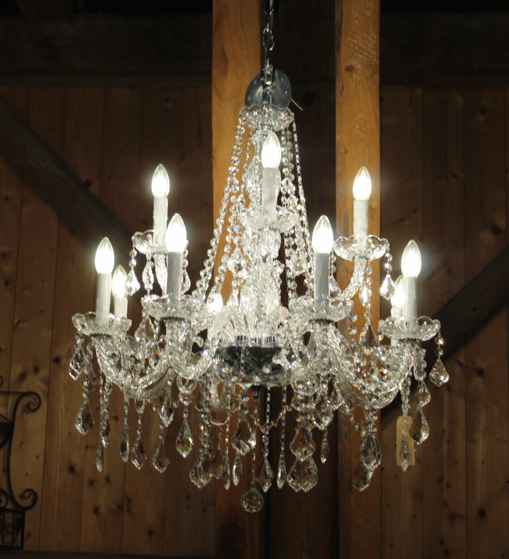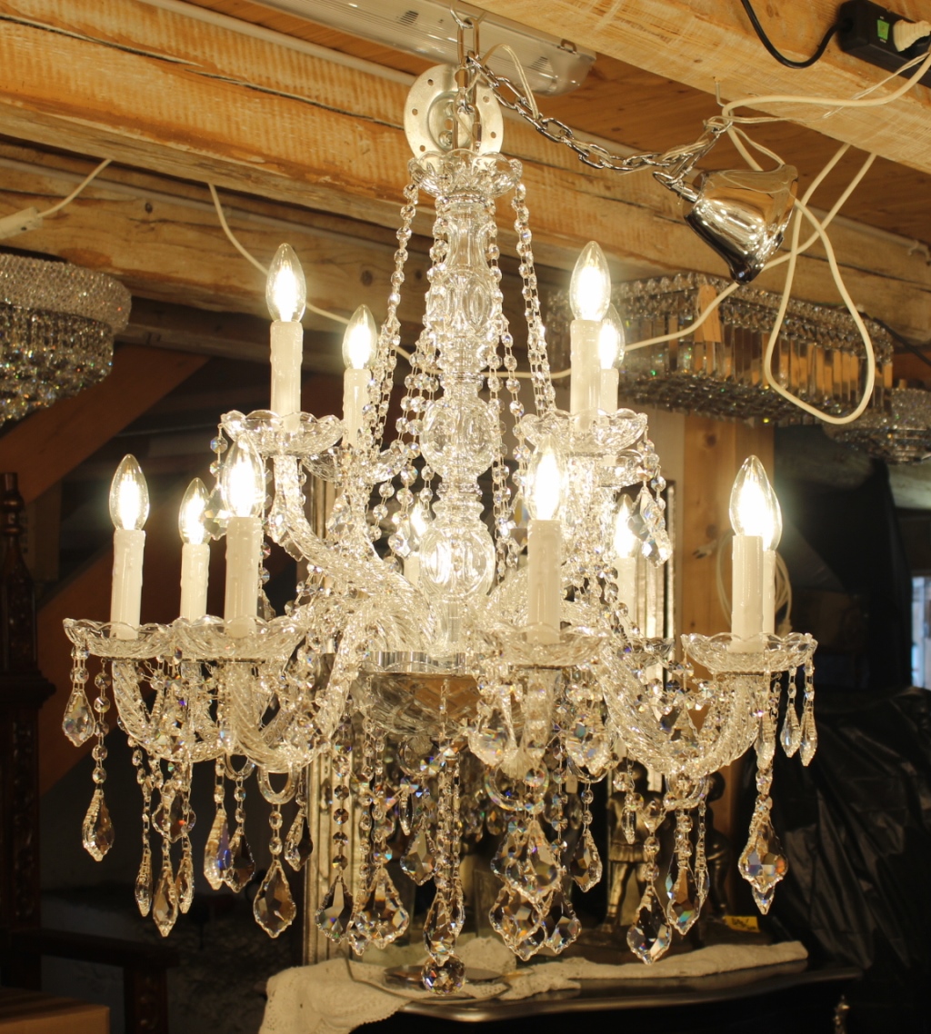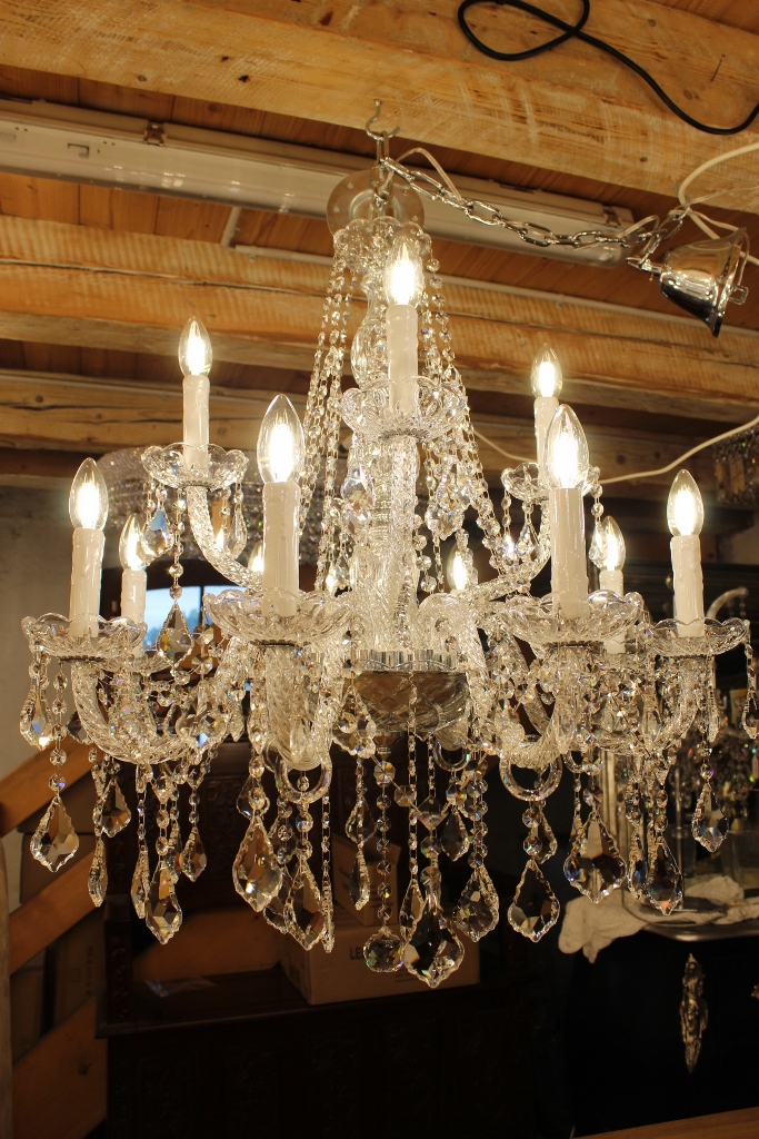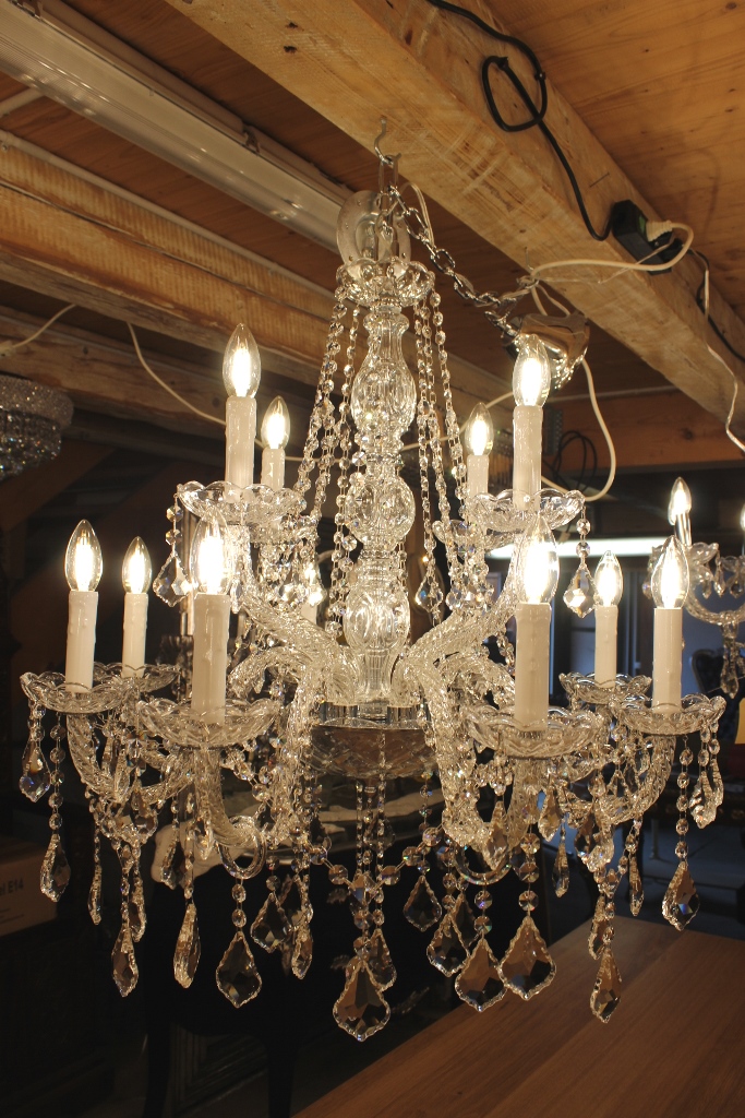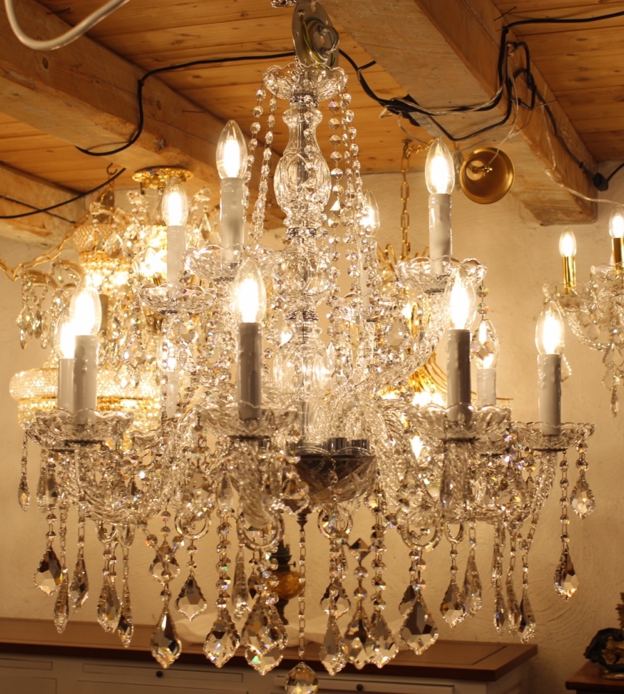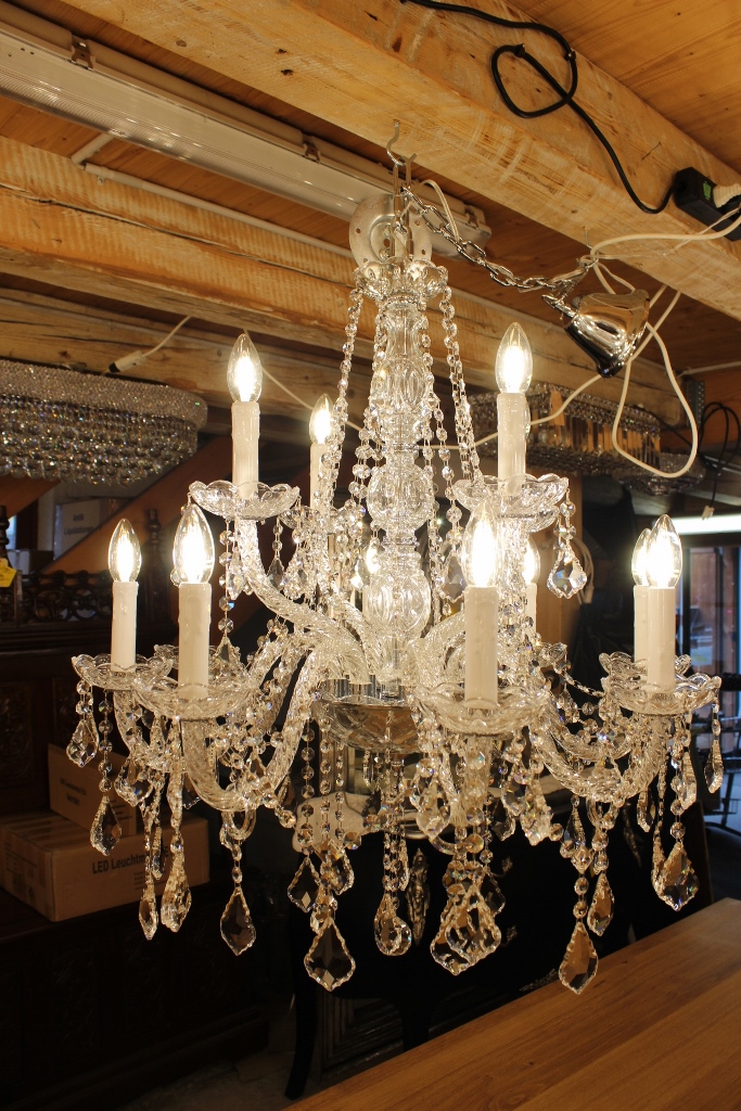 Insgesamt hat dieser Lüster 12 Lichter, 220 Volt / 40 Watt