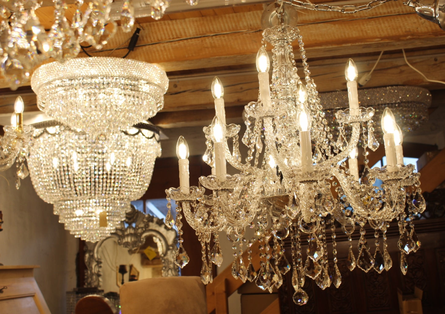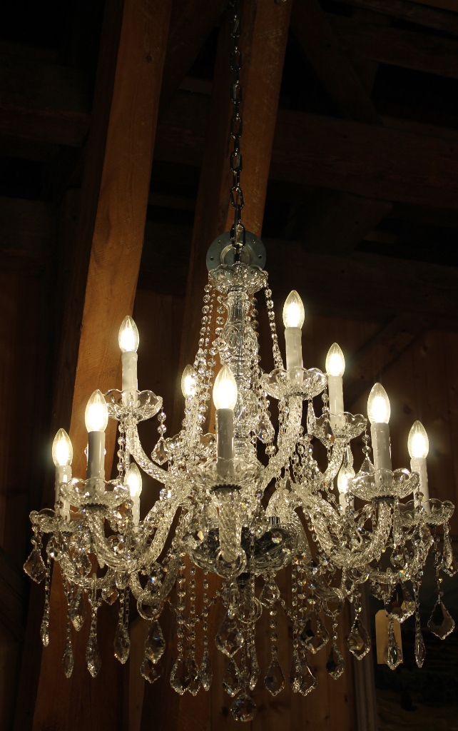 mit unzählig, funkelnden Bleikristallen behangen.