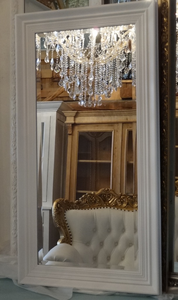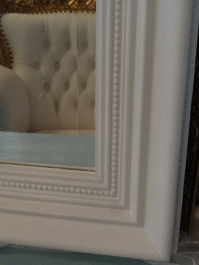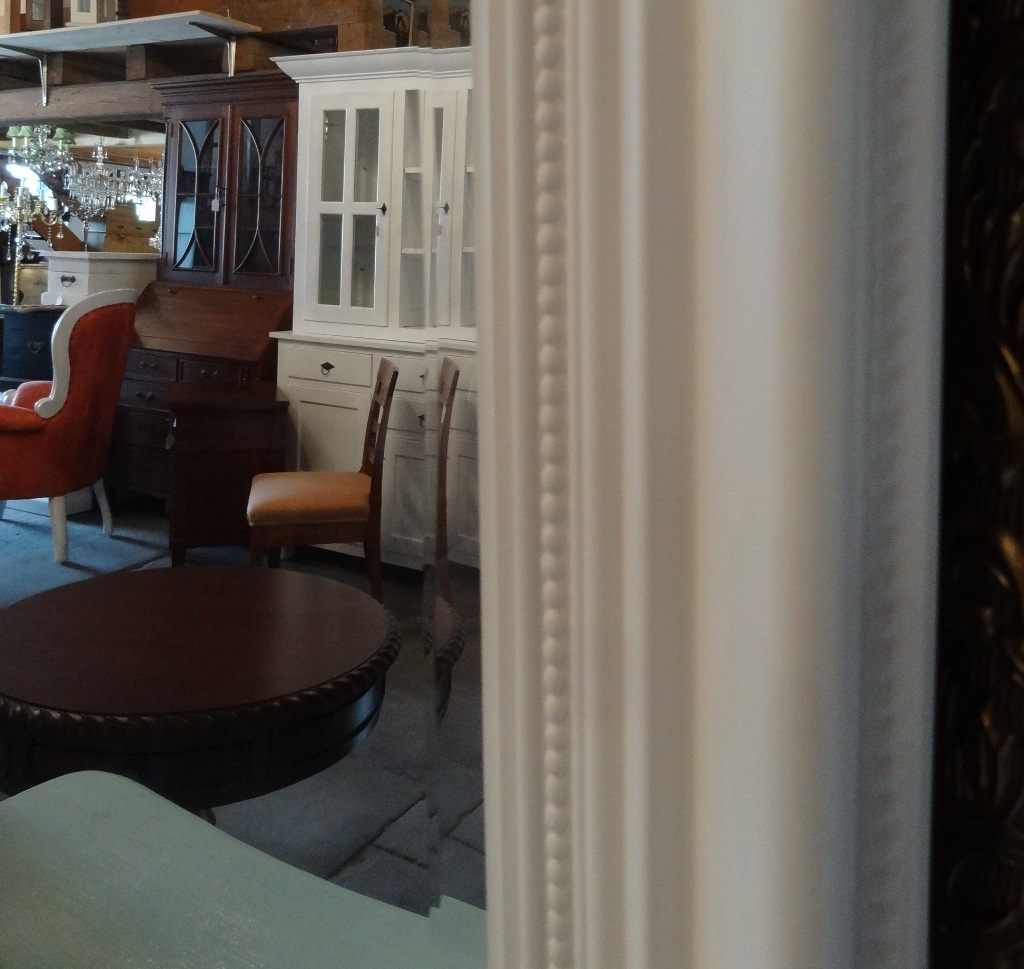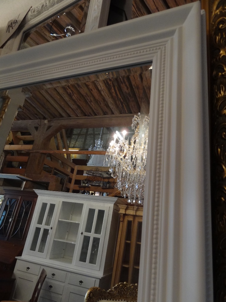 Schlichter Spiegel mit weissem HolzrahmenSpiegelglas mit Facettenschliff.Innenmass: 38X88cm