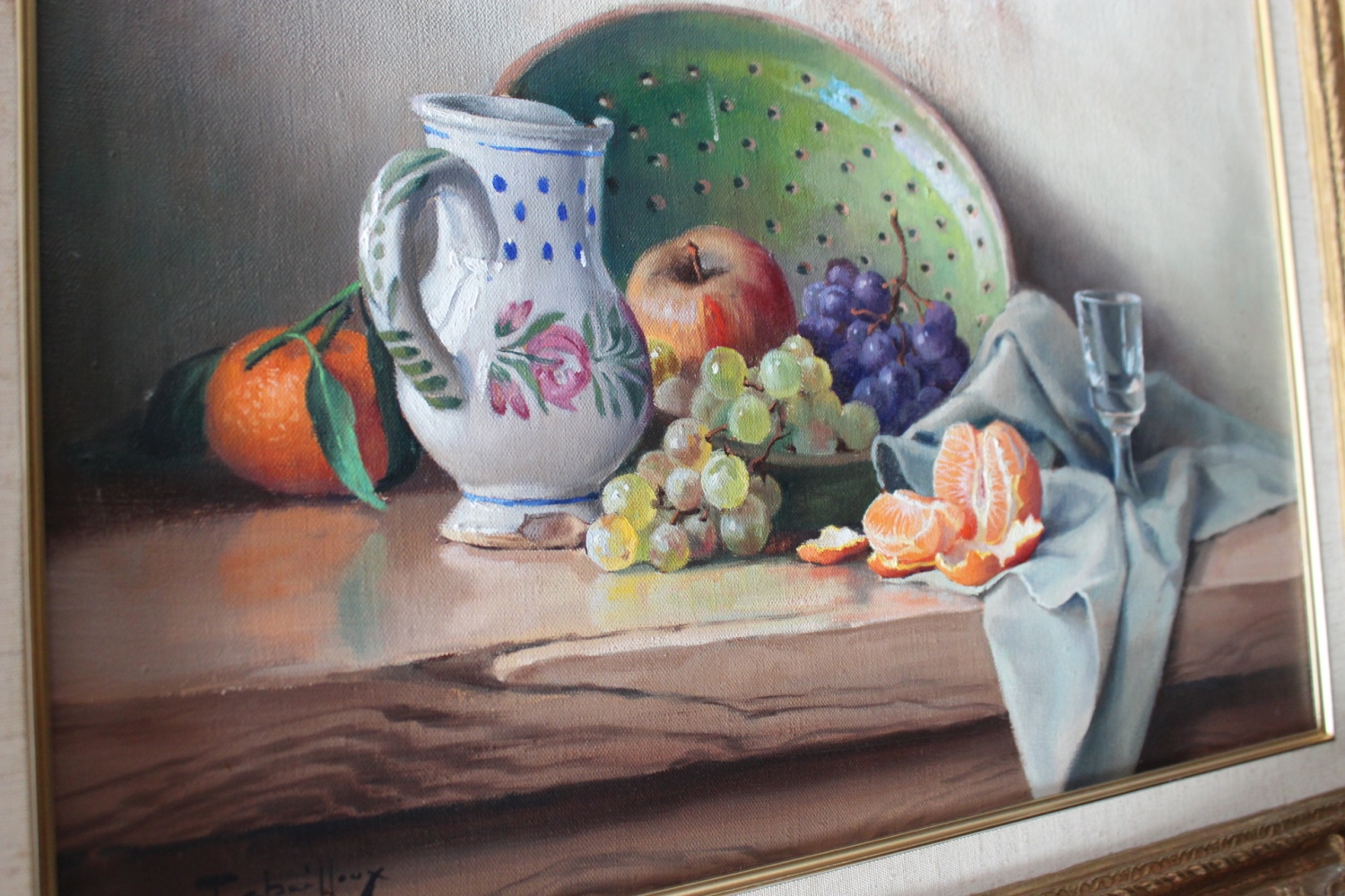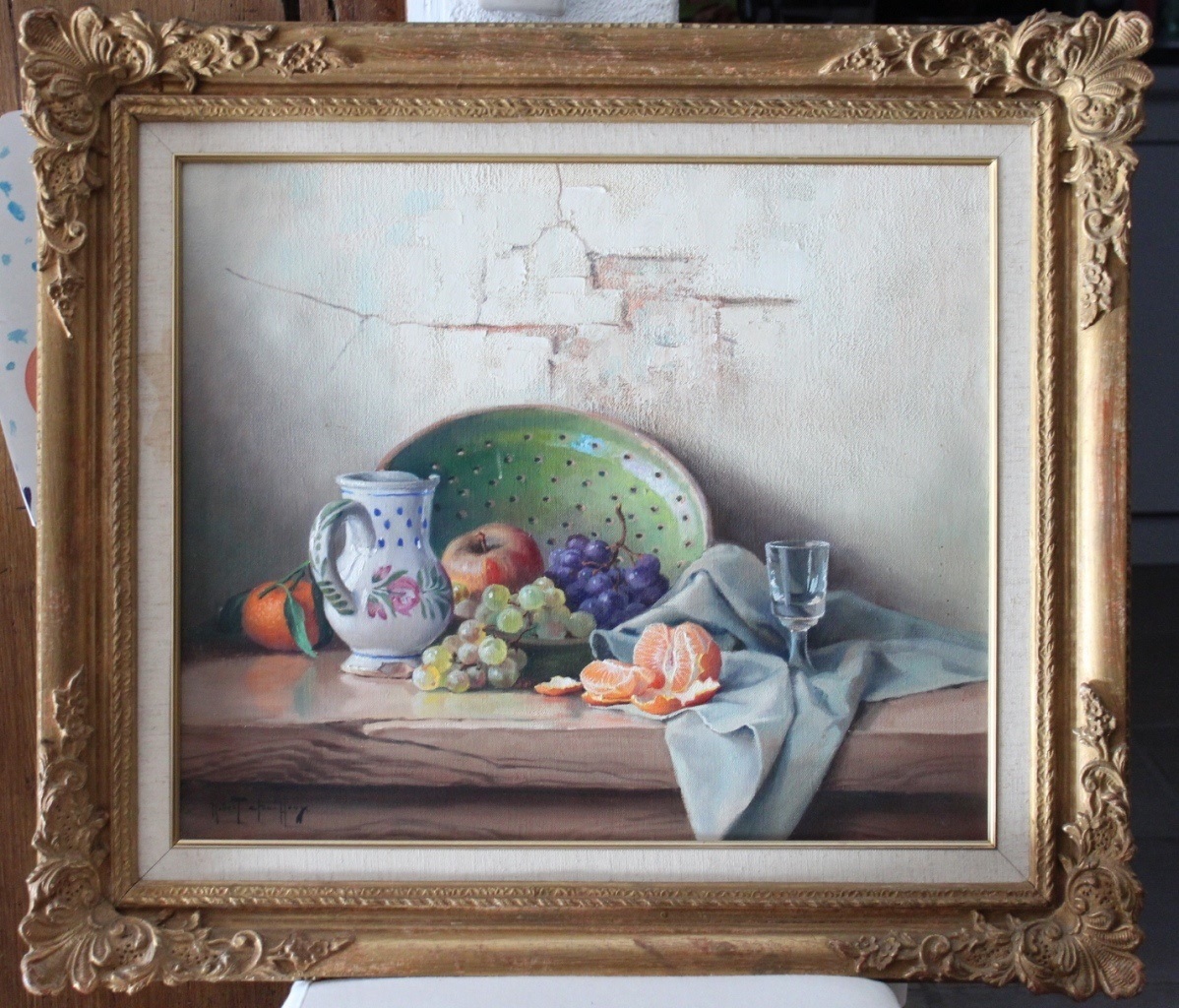 Spezielles (wohl französisches) Bild.Handbemalt mit Früchten.Malerei auf Leinwand verkauft